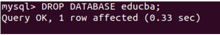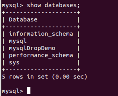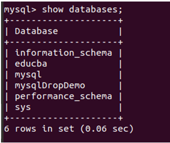We can see that the educba database does not exist in our database server of MySQL. Now, we will restore the educba database from the backup file backupOfEducba.sql that we created by dumping the educba database previously.