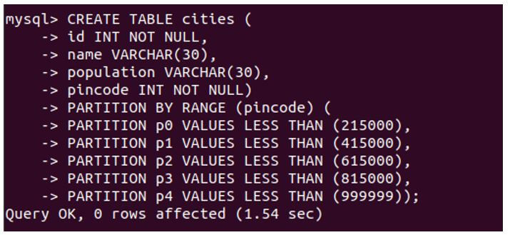 For example, let us create a table to store the country’s cities and create five partitions based on pin codes.