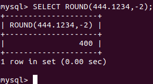 The output clearly shows that the value rounds off on the left side of the decimal place. As the decimal places up to which we have to round are -2, two digits from the left are made zero, while the third digit depends on the value of the second digit. If the value of the second digit is greater than or equal to 5, then increase the value of the third digit by one. Otherwise, do nothing. It stays the same.