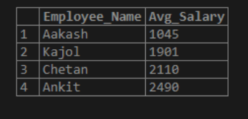 SELECT Employee_Name, TRUNCATE(AVG (Salary),0)Avg_Salary FROM Employee a