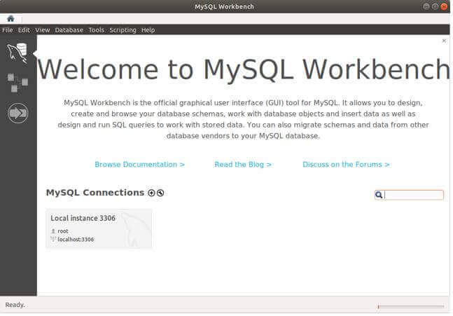 Step 4: You can search the dashboard for the Mysql workbench and then open the workbench application. This will open the following screen.