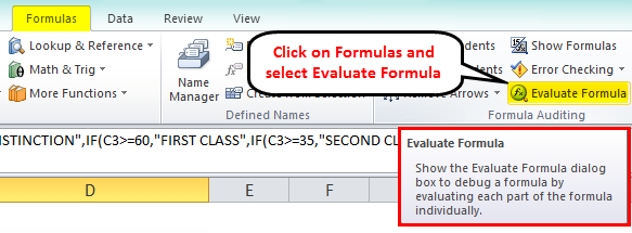 - Evaluate Formula feature is located on the Formula tab under the Formula Auditing group or subsection. This feature helps out to solve your complex formula. Nested IF Formula step by step.