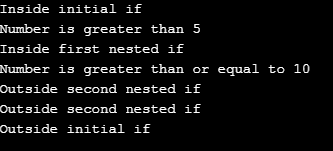 In the following example, we implement the nested if-statement on a program where the user inputs a number and checks different conditions with regards to that number. Though the program is very simple, the only intention is to discuss the nested if-statements’ flow.