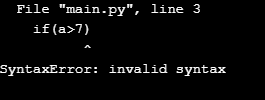 Colon (:) must be follow all the ifs in the nested if-statements; otherwise, invalid syntax error would occur as follows: