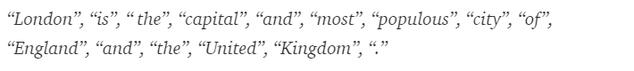 2. Word Tokenization – A sentence could further be split into the token of words as shown below.