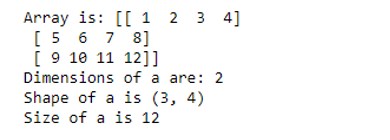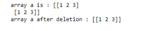print ("array a after deletion :", np.delete(a,[1,2,3], axis = 0))