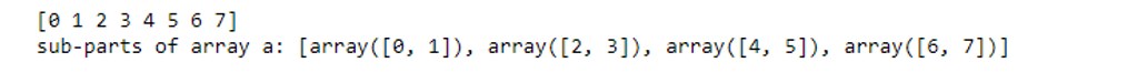 There are few other functions like hsplit(array,index), vsplit(array,index), array_split(array,index,axis) that can be employed to perform the similar task.