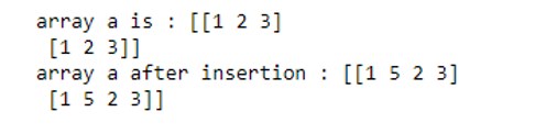 print ("array a after insertion :", np.insert(a,1,5, axis = 1))