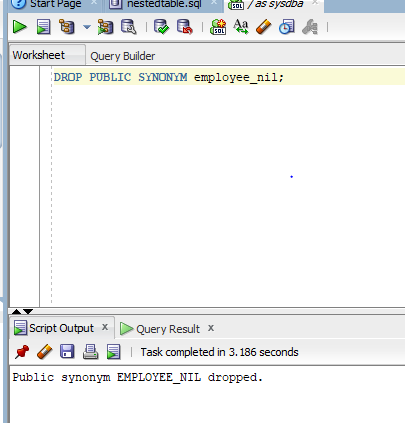 As we can see in the above screenshot the Public synonym EMPLOYEE_NIL has been dropped.
