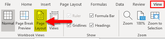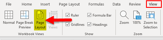 - Go to View Tab, and Click on the Page Layout section.