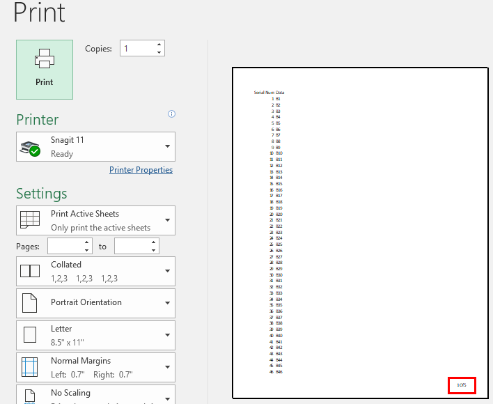 The worksheet has five pages, and the page number is first. Now let us learn to insert page numbers in multiple worksheets in the next example.