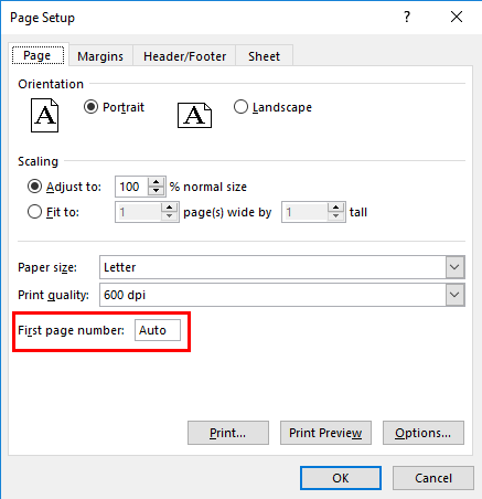 - By default, the first-page Number is Auto; we can change it to the desired Number.
