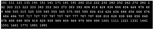 Don’t worry here is an example suppose we have to print palindromes between the given range of numbers. For example range is {10,122} then output should be {11, 22, 33, 44, 55, 66, 77, 88, 99, 101, 111, 121}