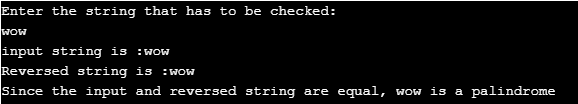 System.out.println("Since the input and reversed string are equal, "+ str +" is a palindrome");