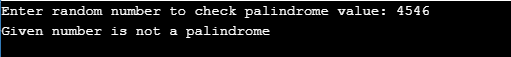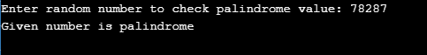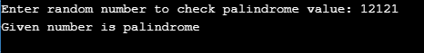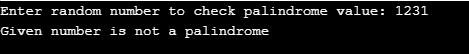 cout << "Given number is not a palindrome"; // If it doesn’t match with original print, not a palindrome
