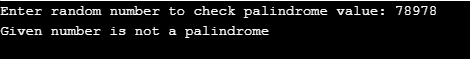 cout << "Given number is not a palindrome"; // If it doesn’t match with the original print, not a palindrome