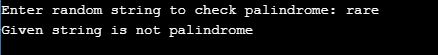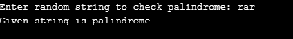 In previous examples, we check palindrome for the value. In the above program, we have test palindrome for the string. First, we initialize string to store the string values. Here we used the strlen() keyword to find the length of the string. The logic for the string is the same as for numbers. Here to find the reverse of the string we used for loop. Once the reverse of the given string is calculated, it will transfer control to the if-else statement to print the result.
