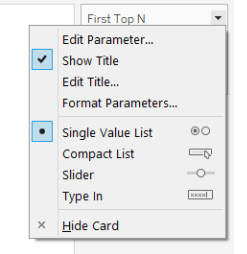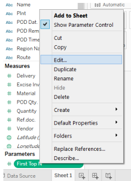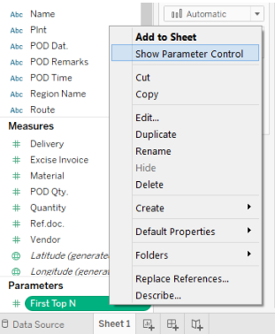 Select the “Show Parameter Control” option from the list. It will make the parameter visible on the screen. Right-Clicking on the parameter will generate a list of menus.