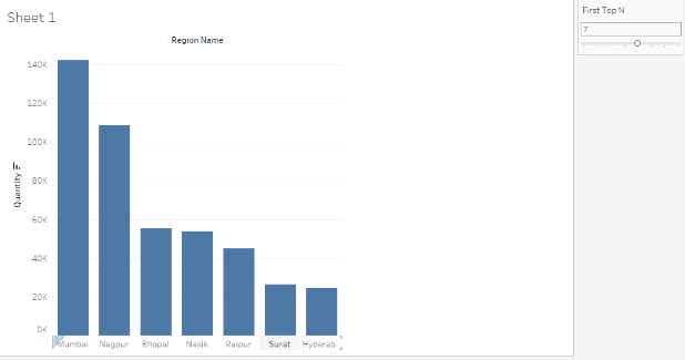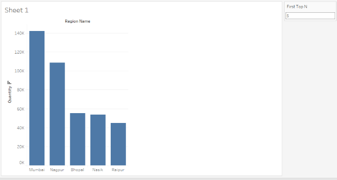 Clicking on “Show Parameter Control” makes the parameter visible. Remember, we had set the default value to 5 while creating the parameter. The graph now has only 5 bars corresponding to the first 5 top performing regions.