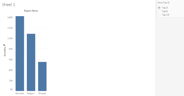 Entering ‘3’ here has given us the first top 3 performing regions regarding quantity sold. The top three performing regions were generated after we entered the requisite parameter value. Parameters enable real-time value assignment and facilitate dynamism to the user.