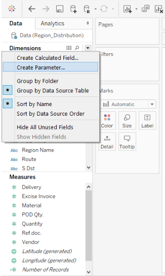Now, we shall see how to create and use parameters step-by-step. Using parameters, we will display the requisite number of top-performing regions. For this example, we will use data with multiple fields. Each field has a significance of its own. For our purpose, the fields of interest are Region and Quantity. The region is a categorical variable, while quantity is a numerical variable.