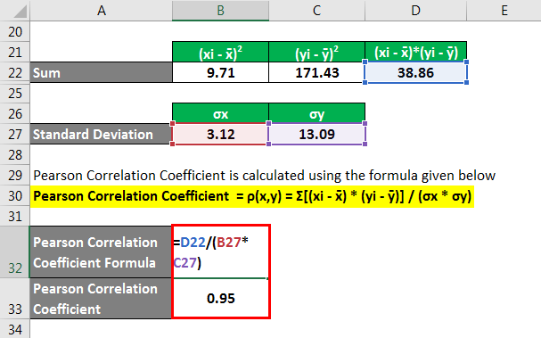 Example of Pearson Correlation Coefficient Formula (With Excel Template)