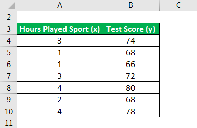 Let’s take a simple example to understand the Pearson correlation coefficient. Mark is a scholar student, and he is good at sports as well. But after some time, he reduced his sports activity and then observed that he scored lesser marks in tests. To test his hypothesis, he tracked how he scored in his tests based on how many hours he played any sport before he appeared in the school tests. He gathered the following data to check the correlation between the hours of sports he is playing and his tests score.