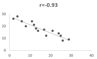 The diagram, which has a value r = -0.93, represents that both the variables are highly negatively correlated, which shows us if there is a positive increase in one variable, the other one will decrease significantly.