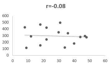 The diagram, which has r = -0.08, represents that there is no relationship between the variables. In short, they both are independent variables.