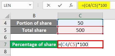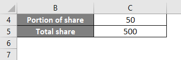 The image below shows a portion of the share in one cell (here, C4) and the total share in another cell (here, C5).
