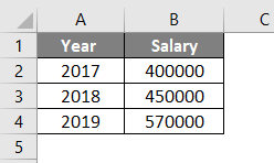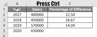 Consider an employee’s salary for three different years. Calculate the percentage difference in his salary for every year in Excel. After finding the percentage, we will try to create a visualization.