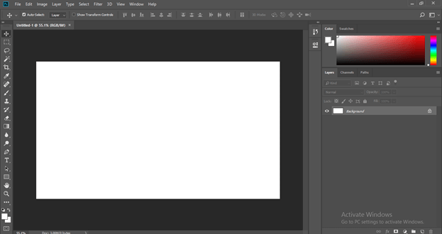 There is a Menu bar at the top of the working screen with several menus such as File Menu, Edit menu, Image menu, Layer Menu, and some other important menus. Below this menu bar, we have a Property bar of the active tool of this software or image on which we are working for making different adjustments during our working. Below this property bar, we have three sections are there on the working screen in which at left side we have a tool panel which has the number of tools, at the center we have a document area in which we can see our current working, at the right side we have some tabs such as Color, Layer, and some other important tabs. You can rearrange all these sections anywhere on the working screen as per your choice.