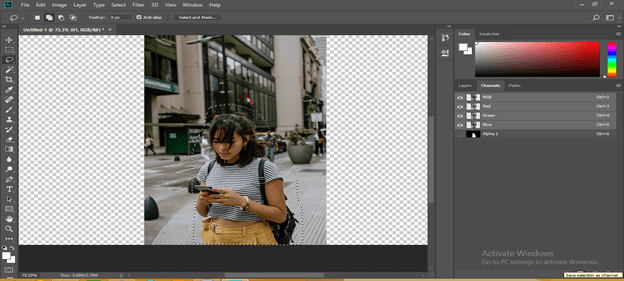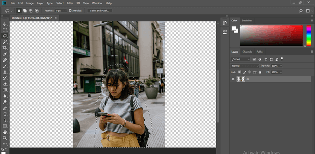 Now go to the Select menu of the Menu bar and click on Deselect option for releasing selection around this girl. You can press Ctrl + D button as a short cut key for this option.