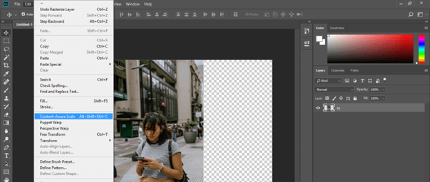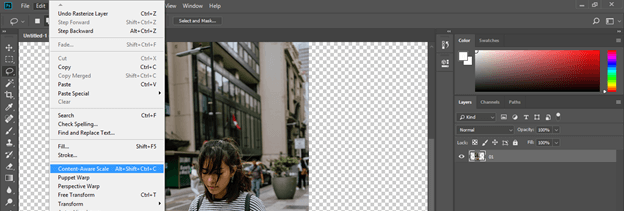 Now again, click on the Content-Aware option of the Edit menu or press Alt + Shift + Ctrl + C