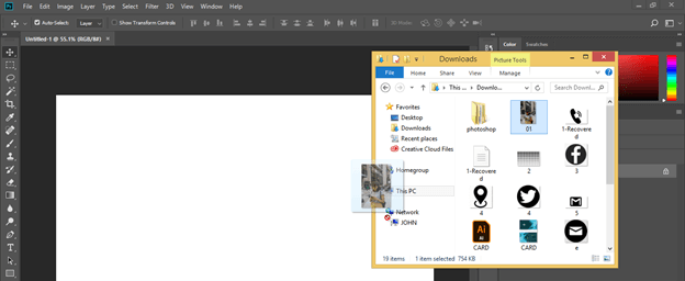 For our learning, let us have an image in this software which background we will extend without destroying the main content of it. For placing an image in this software, go to that folder of your personal computer where you have saved it, then pick it from there and drop it in the document area of this software by releasing the mouse left button. You can have your own image or have any downloaded image of the internet for this purpose. I will use a downloaded image.