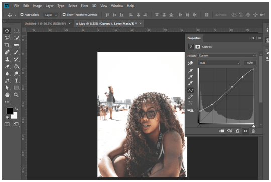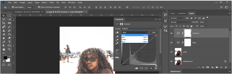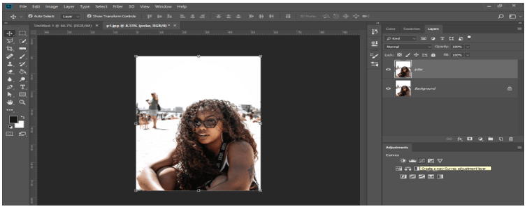 Now the Adjustment tab will be open in the layer panel section of this software. Click on ‘create a new curve adjustment layer button’ of this tab for the color curve value of this photo.