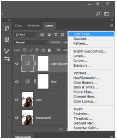 Now again click on the Adjustment layer button of the layer panel and choose the Solid color option from the list.