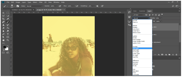 Now decrease the opacity of this layer as 50 % and choose Soft light option in the mode option of this layer.