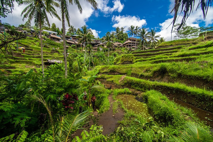 Tegallalang’s emerald-hued rice fields should be photographed if you enjoy nature and cinematography and want to experience Bali. A stroll through the rice fields is an essential activity while in Ubud. Here in Bali, local farmers practice a distinctive kind of rice farming that was created in the eighth century. Because of how the sun strikes the rice fields, the landscape has a more heavenly appearance. Famously known as a setting for filmmakers and painters, the rice terraces in Bali look even more beautiful, lush, and green during the rainy season, making it an excellent time to visit this famous location. Additionally, the area is rich with cafes and eateries that allow you to grab a cup of coffee and sample some of the mouthwatering local cuisines.