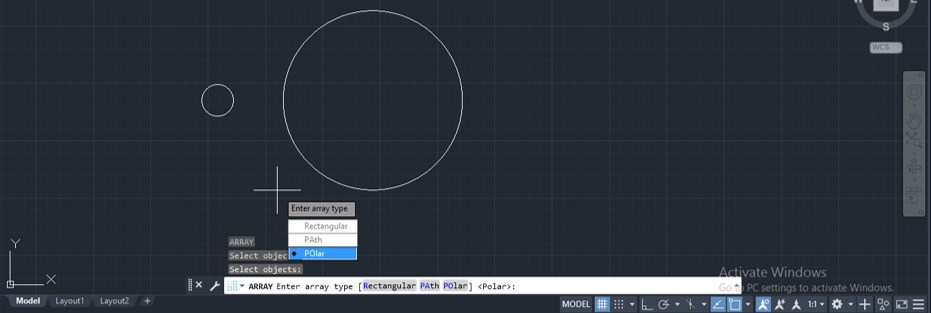 Step 6: Now, if you use a shortcut key for this command, then it will ask you to choose the polar array command from this option so that I will click on the polar array option, or if you want to skip this step, then you can directly take polar array command from modify menu.