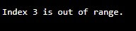 # Invalid index: 3 (list has only three elements with indices 0, 1, and 2)