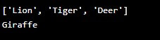 print(Animals) # Output: ['Lion', 'Tiger', 'Deer']