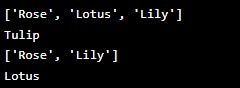 print(Flowers) # Output: ['Rose', 'Lotus', 'Lily']