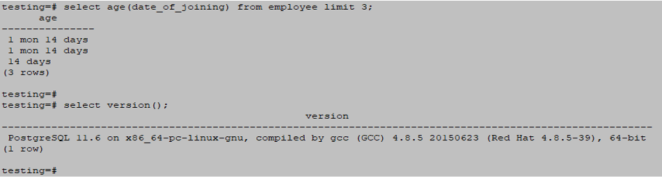 select age(date_of_joining) from employee limit 3;