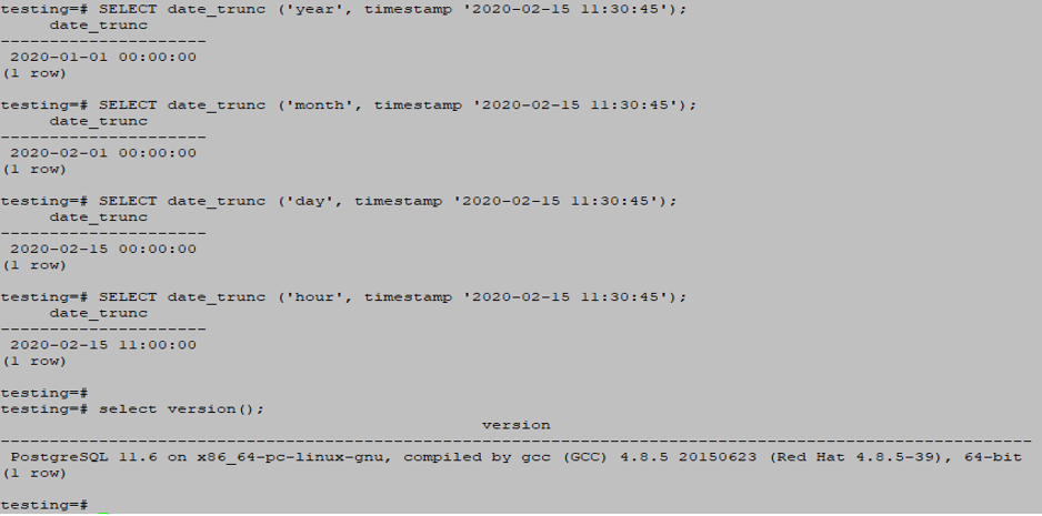 SELECT date_trunc ('hour', timestamp '2020-02-15 11:30:45');