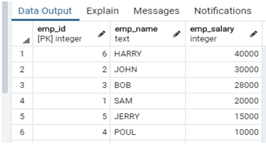 - In the above example, suppose we need to sort employee salary in ascending Order, at that time, use the above statement to sort employee salary. Illustrate the end result of the above declaration by using the use of the following snapshot.