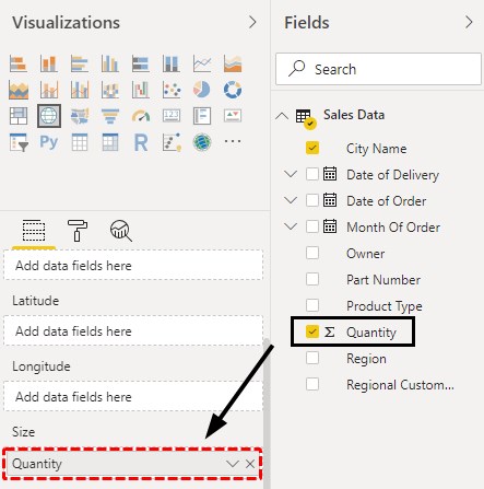 - As we do that, the size of the buddle there will get increased as per the size of data available in that region. Bigger the size of the bubble, higher the quantities sold in that City.