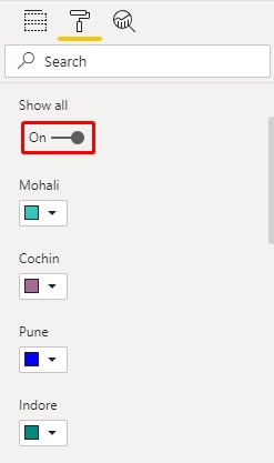- To see all the city colors, click on Show All to enable ON. Here we have assigned different colors to each city name to distinguish them separately.