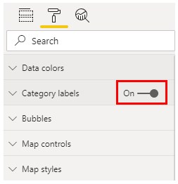 - Then we will turn on the Category labels from the Format option. This will help the viewer to see the name of cities properly.