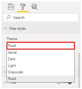 - We can change the theme of the map as well. By default, the Road theme is selected. We can select any theme to make our map more attractive. The use of this option depends on the data which is using.